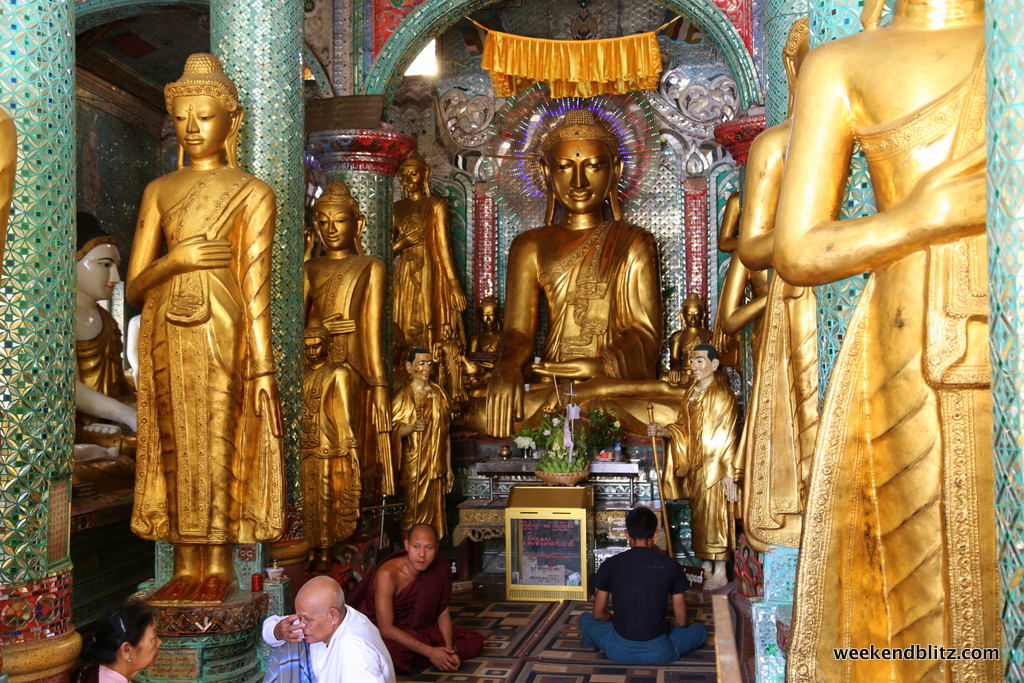 Although legend holds that the stupa is more than 2,600 years old, some historians believe it was actually built by the Mon people between the 6th and 10th Centuries. During the 14th and 15th Centuries, King Binnya U and Queen Binnya Thau (respectively) rebuilt and added to the pagoda. Queen Binnya Thau donated her weight in gold (88 lbs.!) to the temple, starting the tradition that continues to this day of people donating gold to maintain the temple.