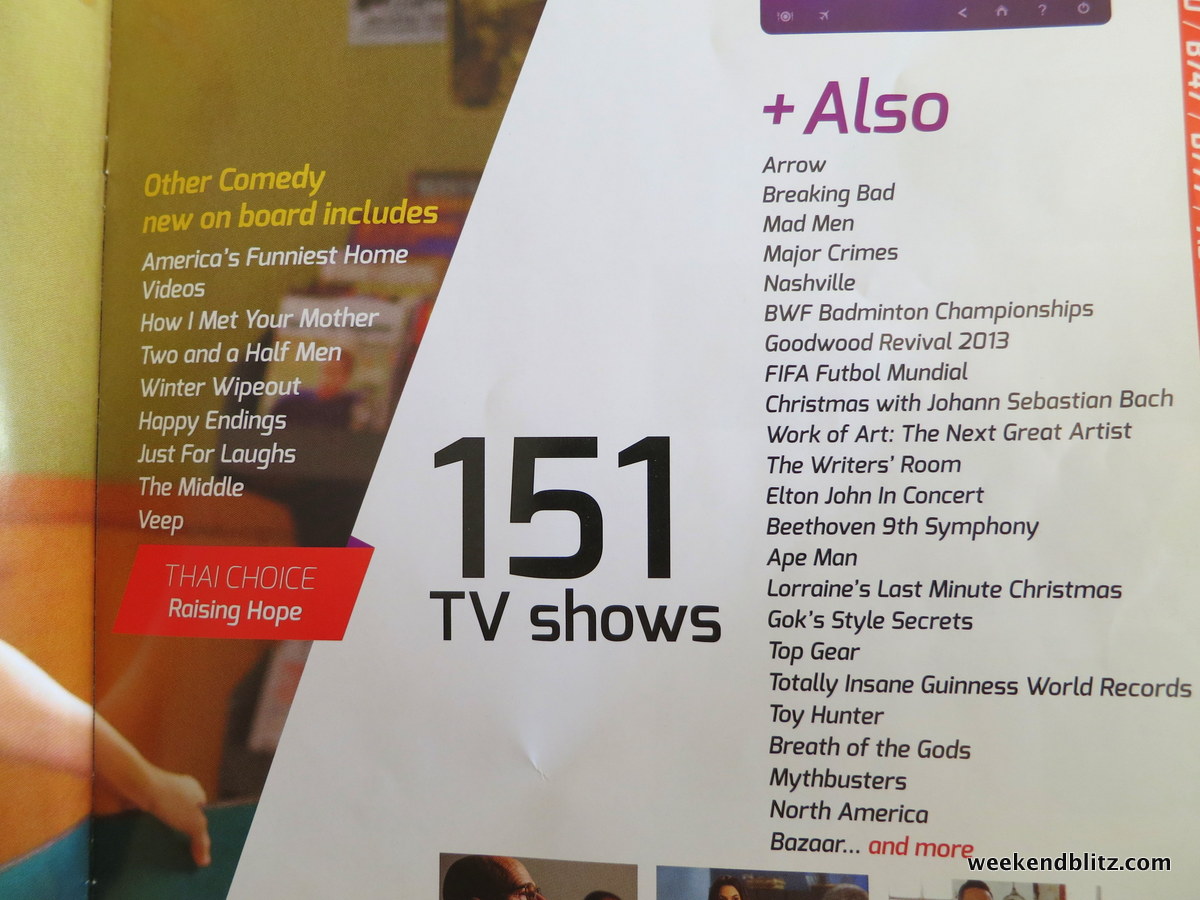And what better to go with a nice big screen? An awesome selection of programs! The entertainment selection –movies but especially the TV shows– were great. They had entire seasons of many popular shows: Mad Men, Breaking Bad, etc…