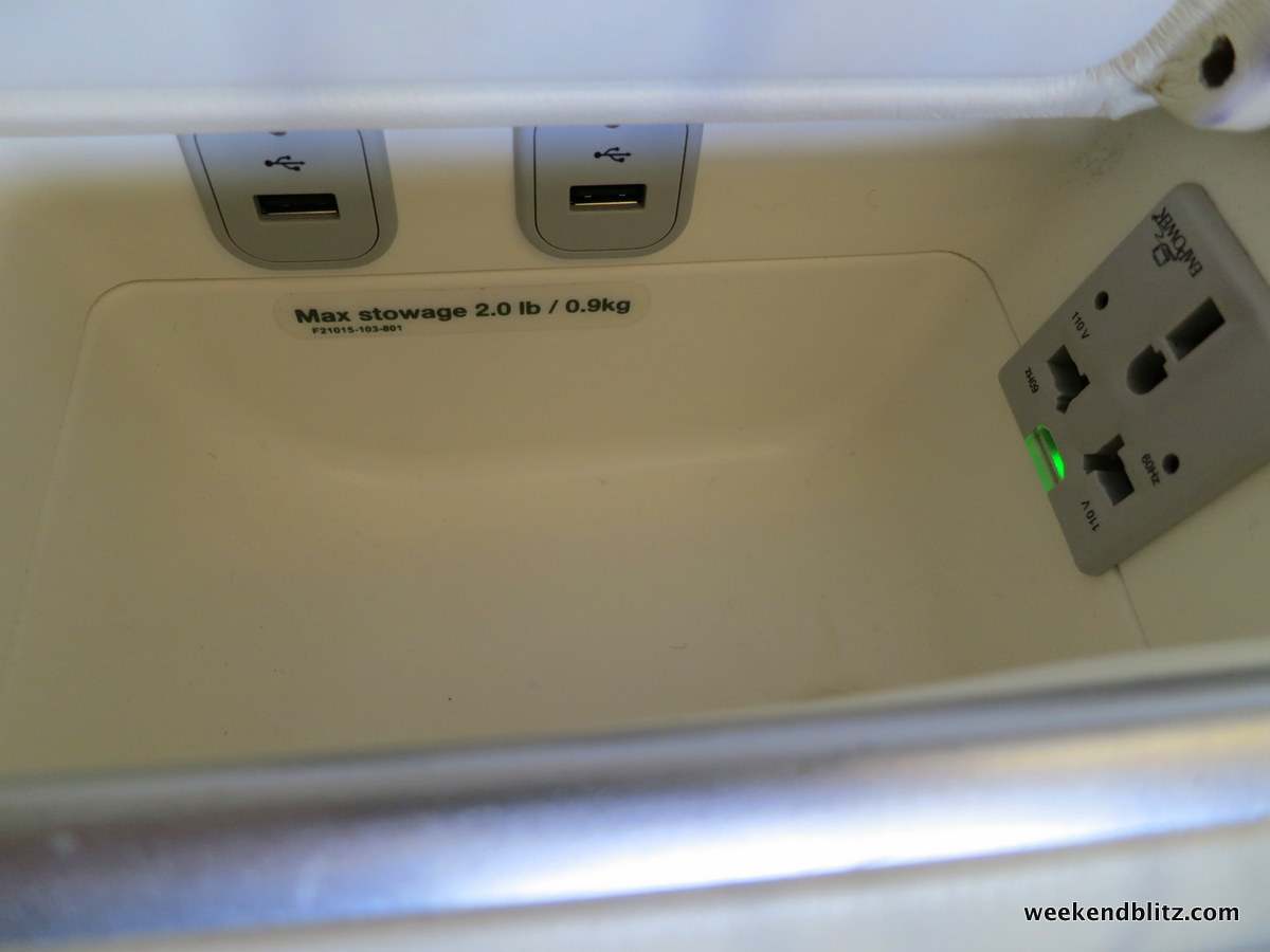 There’s no need to worry about staying charged throughout the flight between the 2 USB ports and 1 international power convertor that could accept just about any plug.