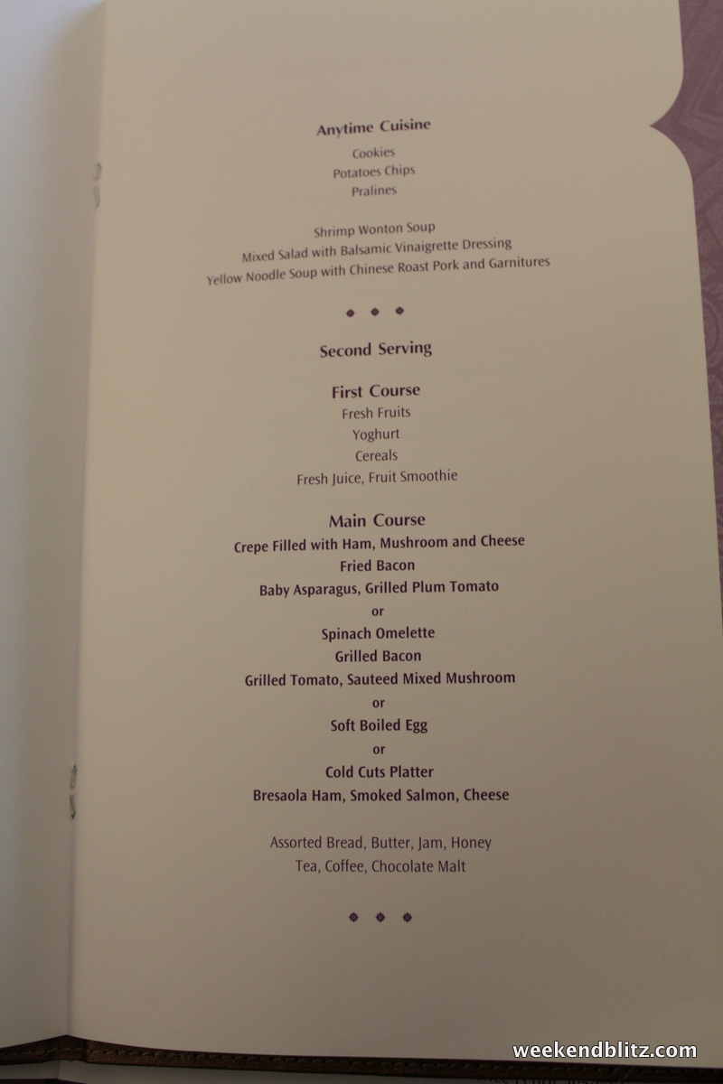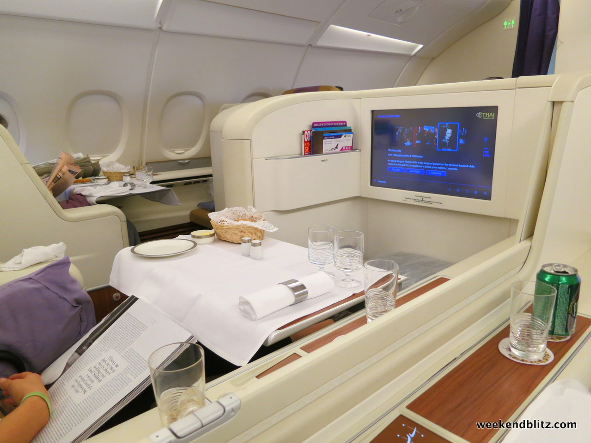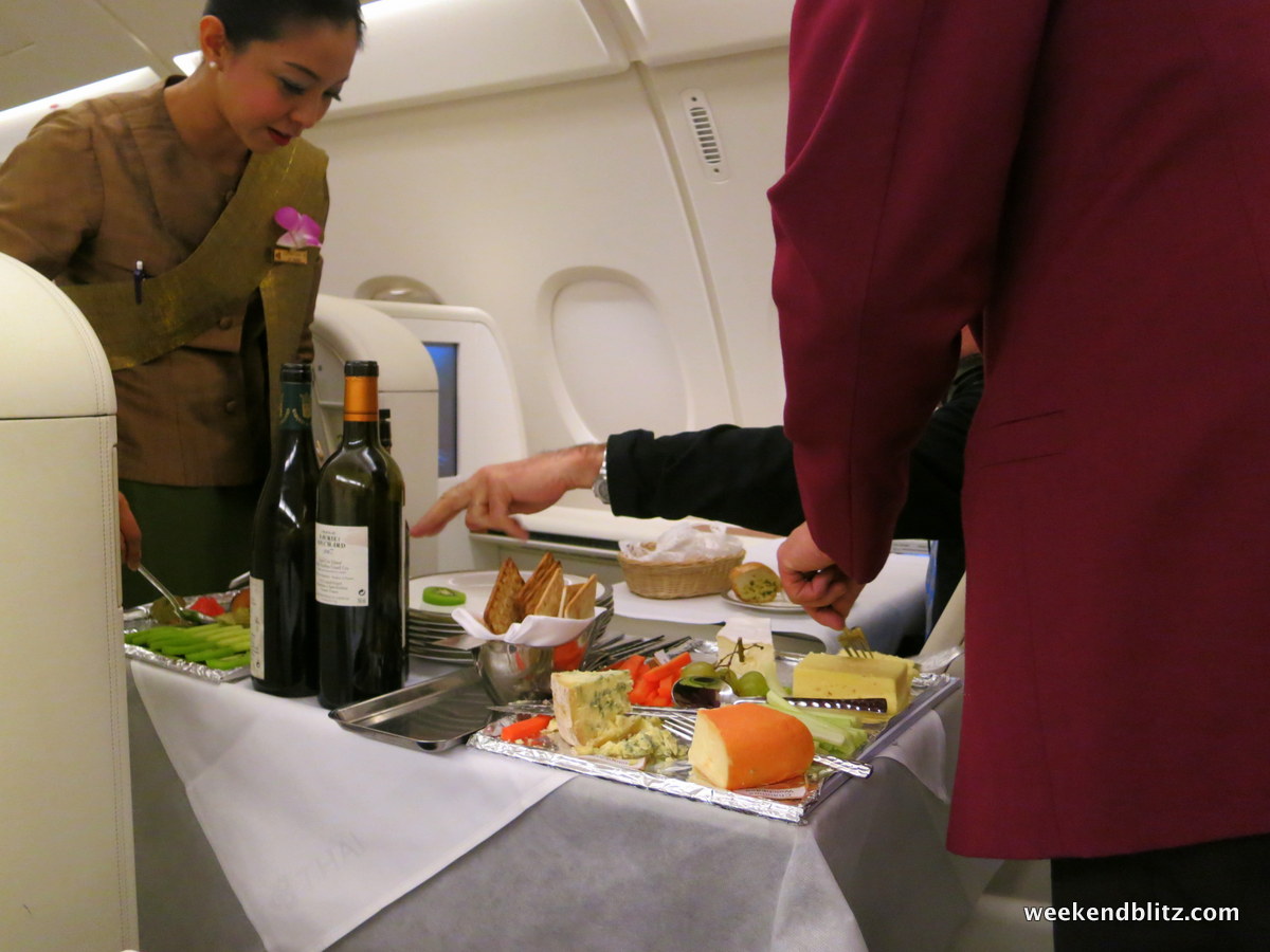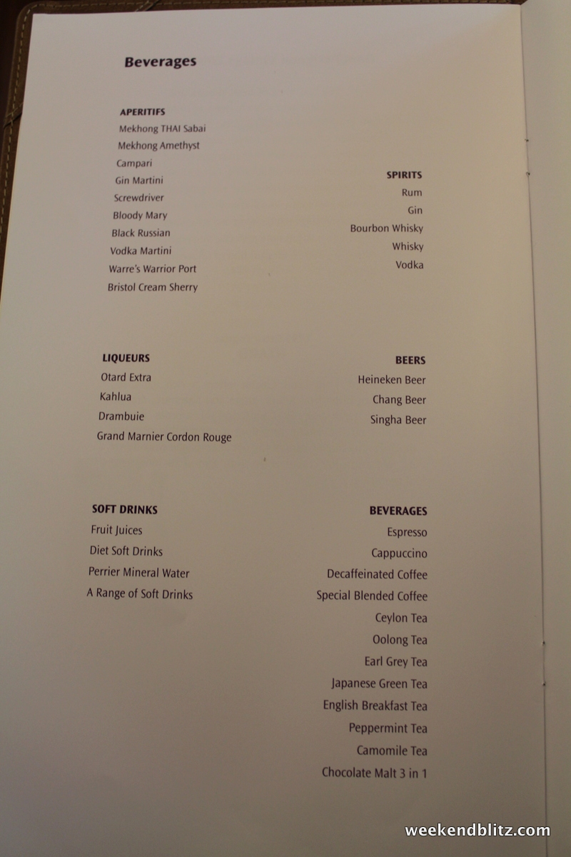 So how was the meal service overall? Since we’d just flown Lufthansa First Class the day before, we naturally drew all of our comparisons between the two carriers. Compared to the Lufthansa First Class experience, our Thai Royal First meal service felt a little rushed and mechanical. However, we found the Thai Airways flight attendants much friendlier and pleasant but that might just be my experience with Germans vs Thais.