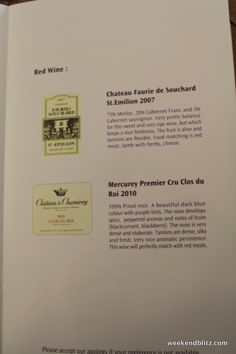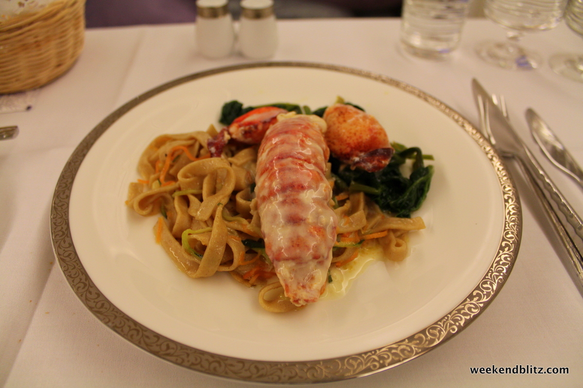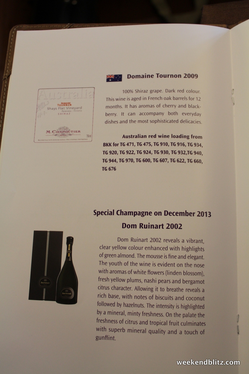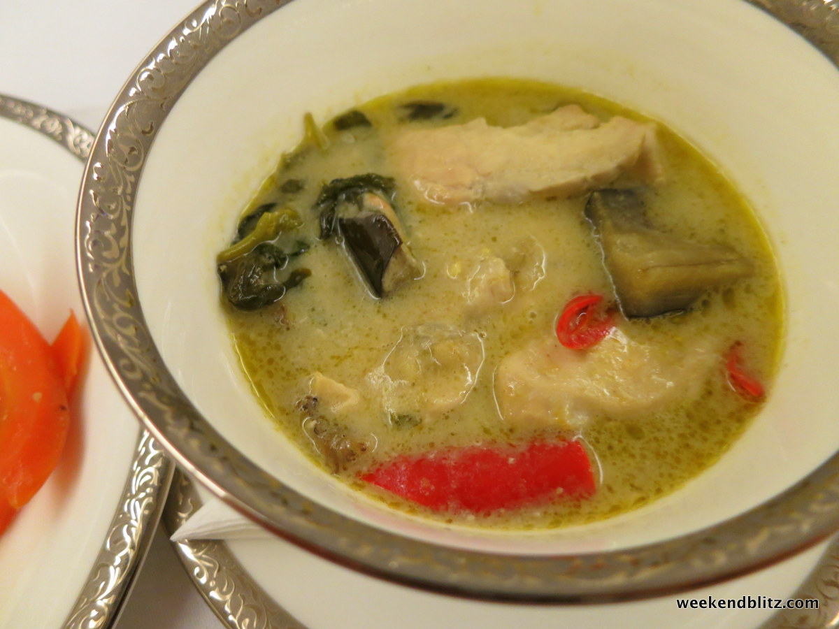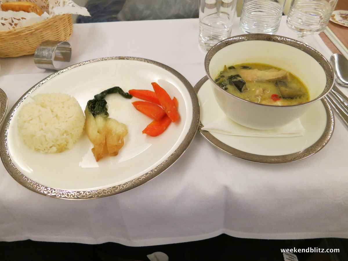 After allowing us a few moments to get settled in, a FA came by to announce my pre-departure selection: the Lobster Thermidor. We flew Thai Royal First about 2 years ago and the man sitting next to us kept raving about how it’s a crime to not order their “signature dish.” I didn’t want to make the same mistake again but I did find it quite difficult to pass up a spicy Thai curry dish.