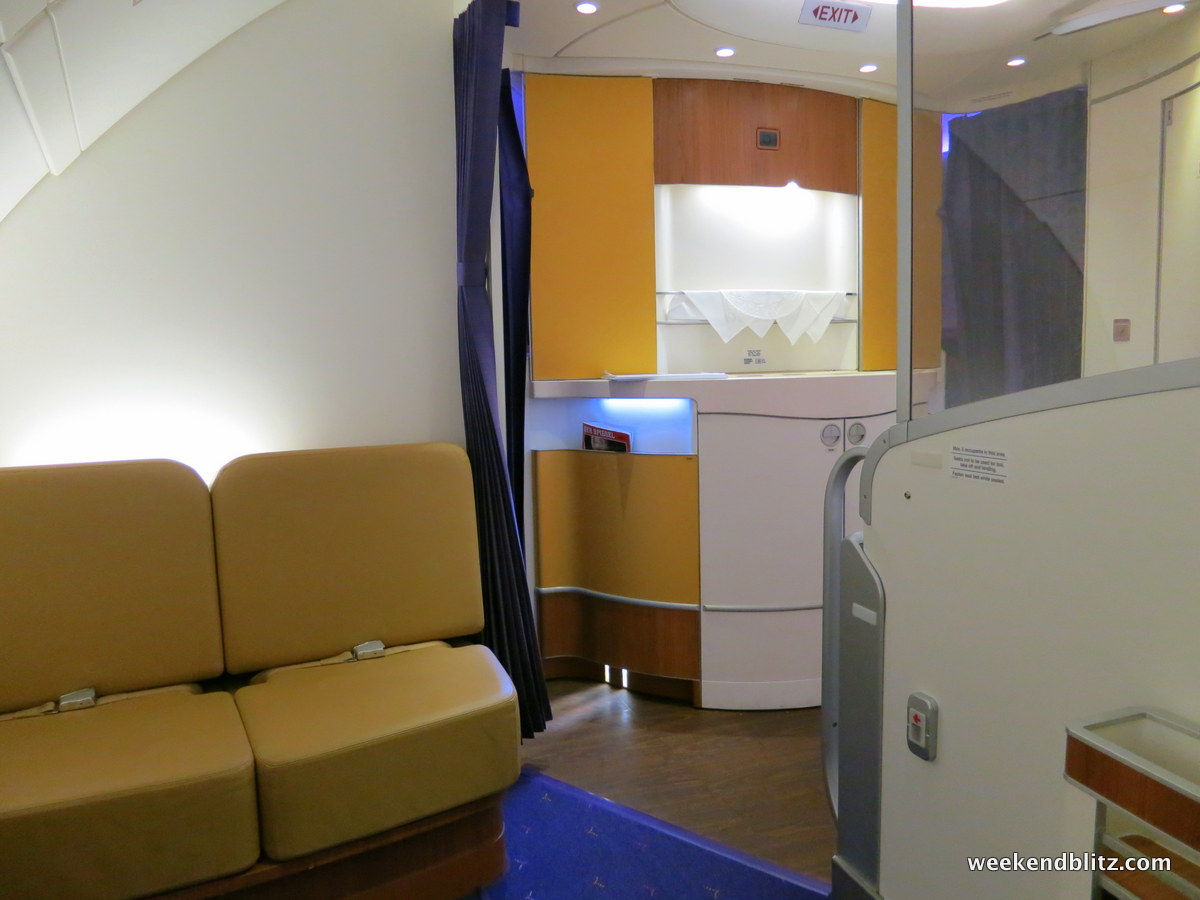 With our dinner (lunch?) service over, it was now time to catch some shut eye but we needed to clear out for a few minutes so that the FAs could make our beds. We took this opportunity to explore the rest of the plane, starting with the First Class cabin.
