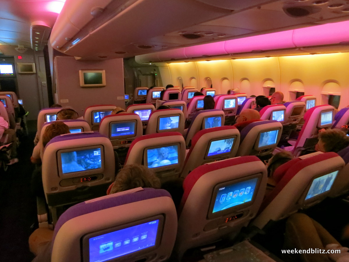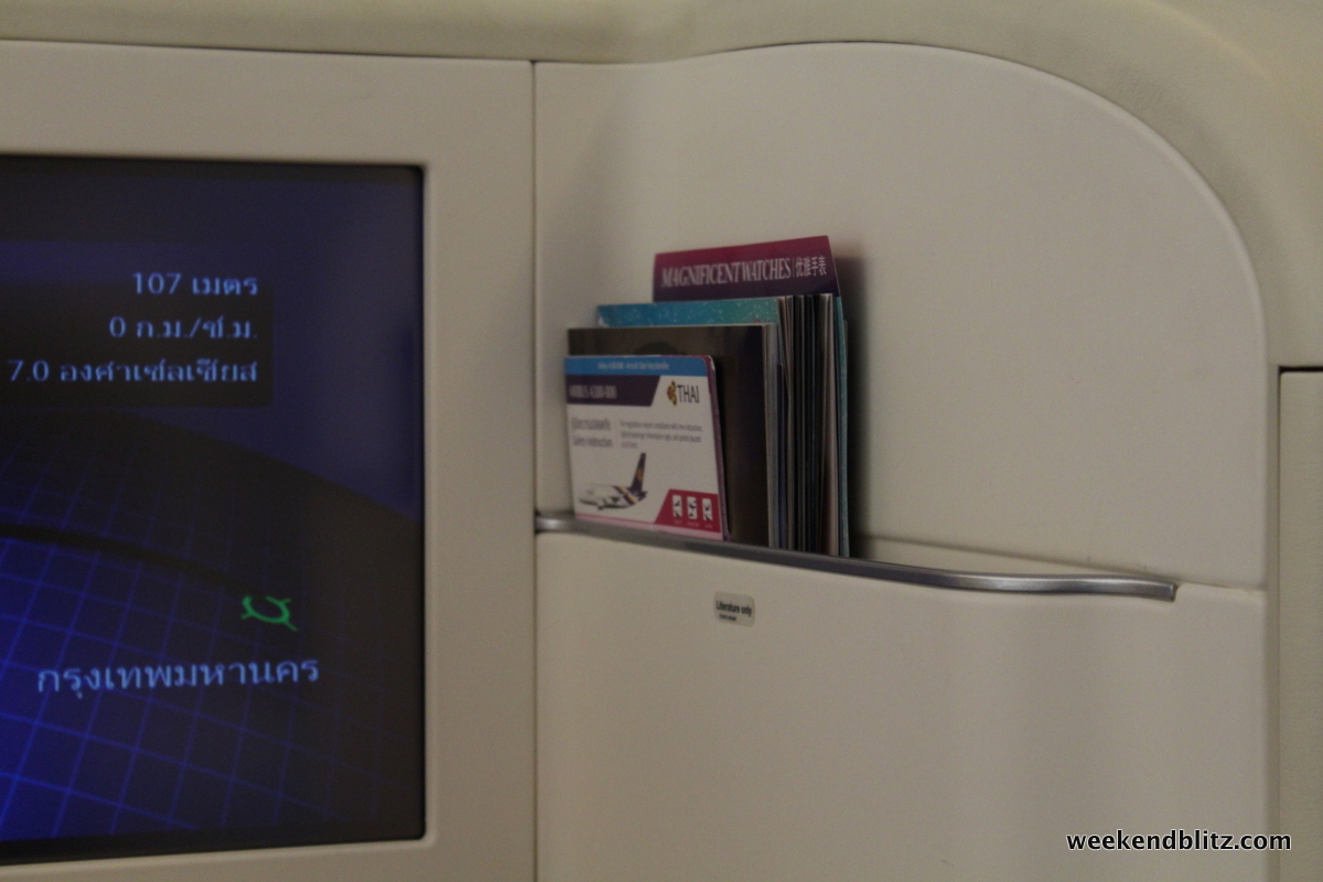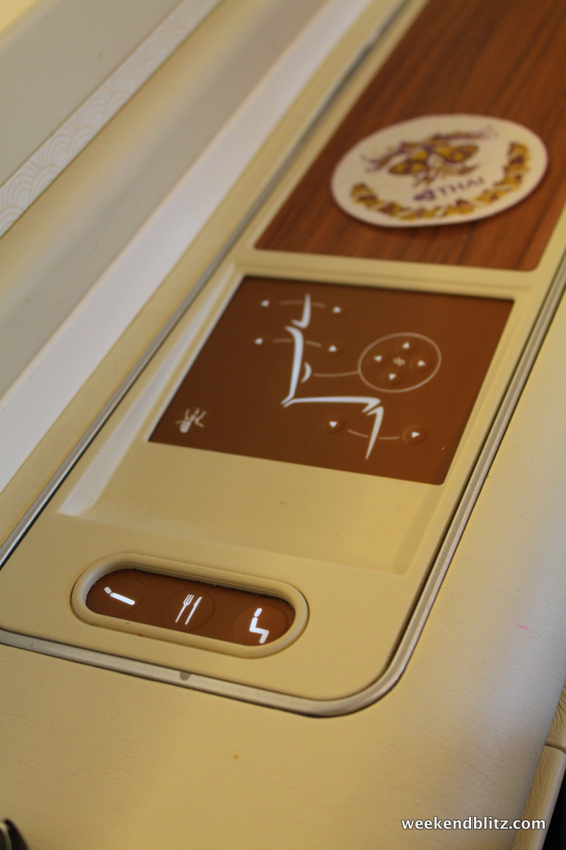 We passed through the boarding door and were greeted by an army of Thai flight attendants dressed in the traditional Thai garb. We were escorted to our seats and began the utter sensory overload of examining every single button, gadget and compartment at our disposal on the plane.