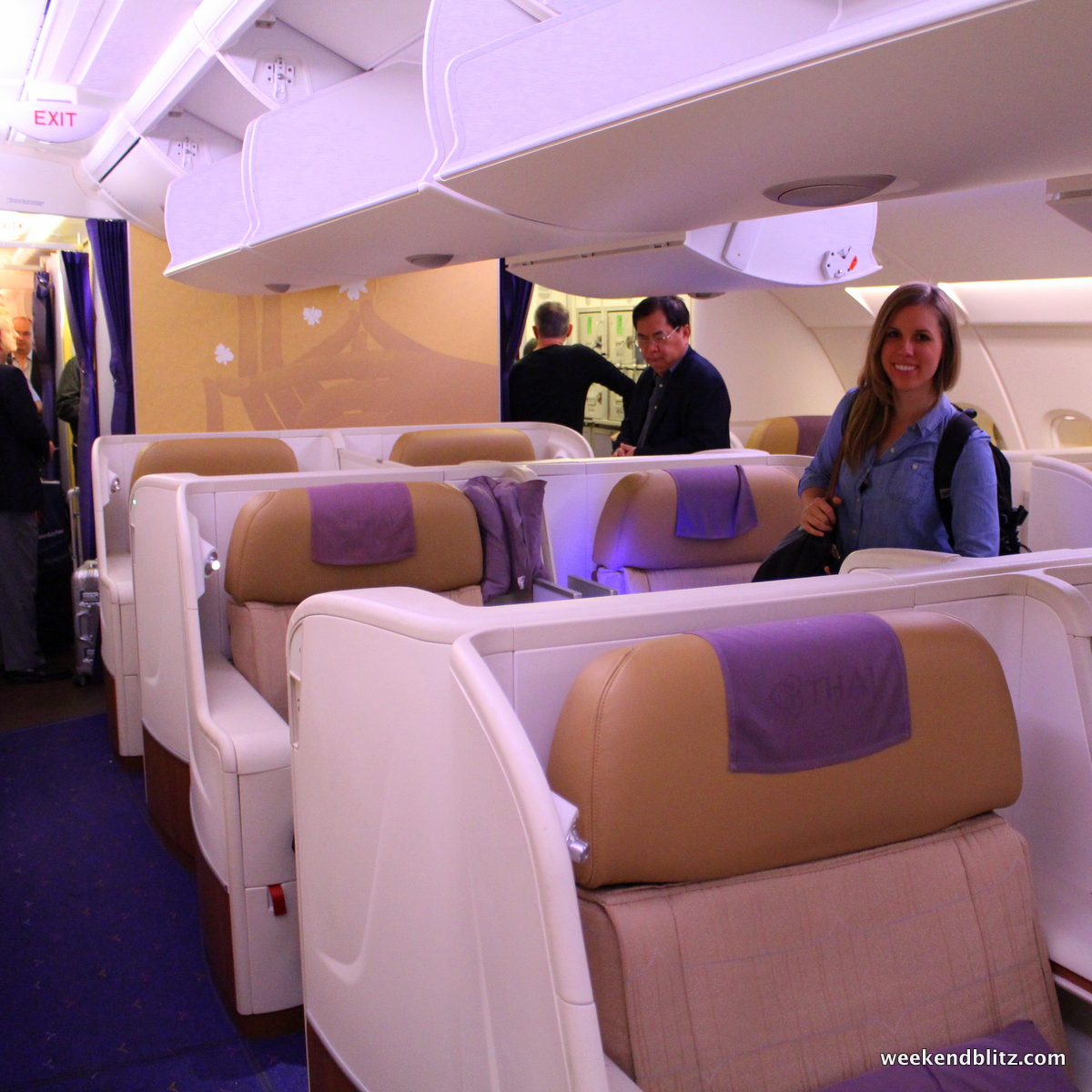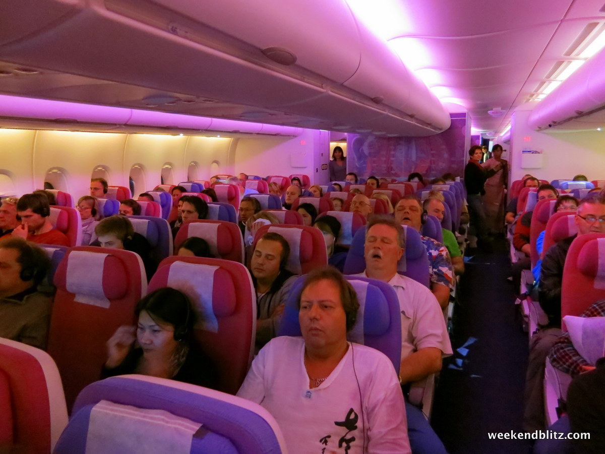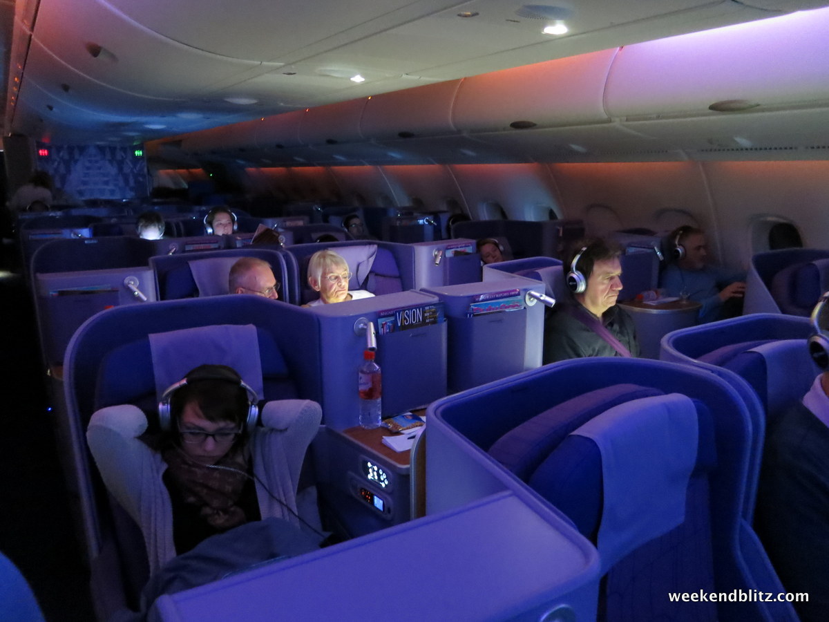 We passed through the boarding door and were greeted by an army of Thai flight attendants dressed in the traditional Thai garb. We were escorted to our seats and began the utter sensory overload of examining every single button, gadget and compartment at our disposal on the plane.