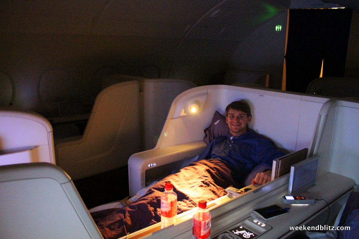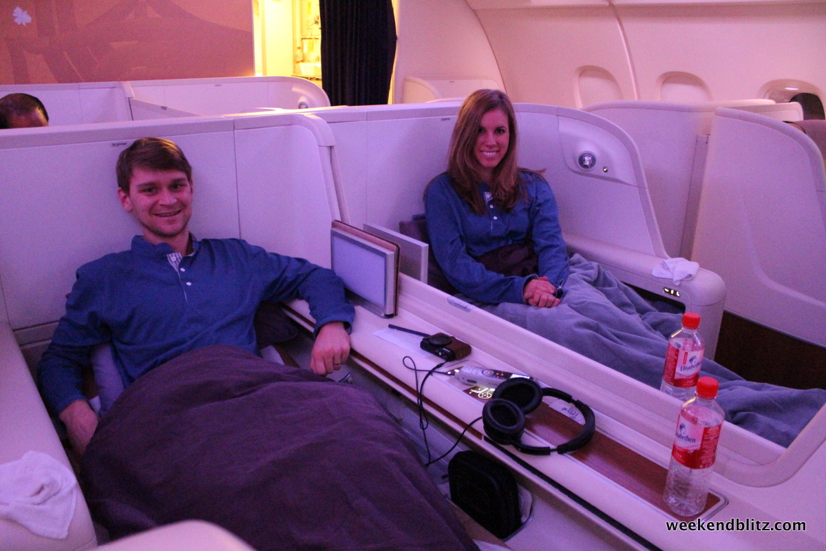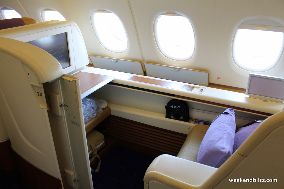- Bed: The Lufthansa bed was leaps and bounds better. Thai, while flat still felt like a seat turned into a bed bed. It got pretty hot in the Thai cabin, too.