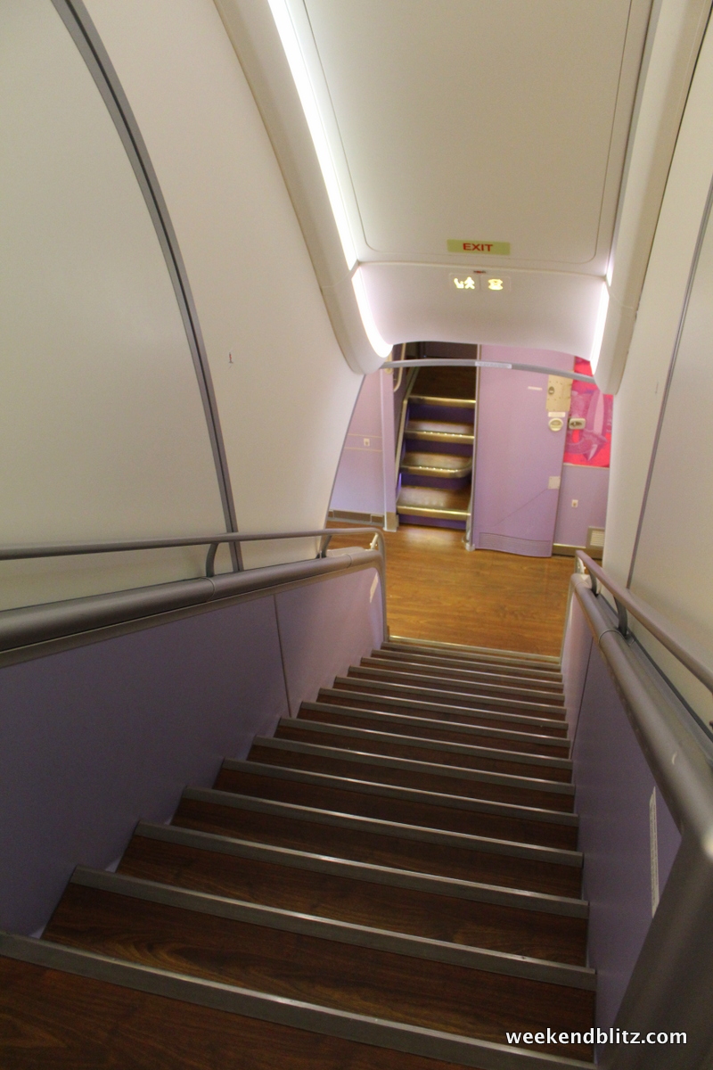 We then ventured for a lap through the plane, starting with economy. We first had to head down the stairs: