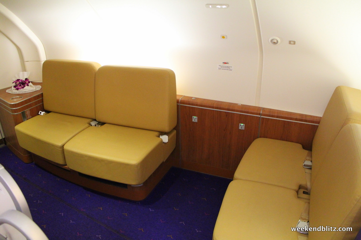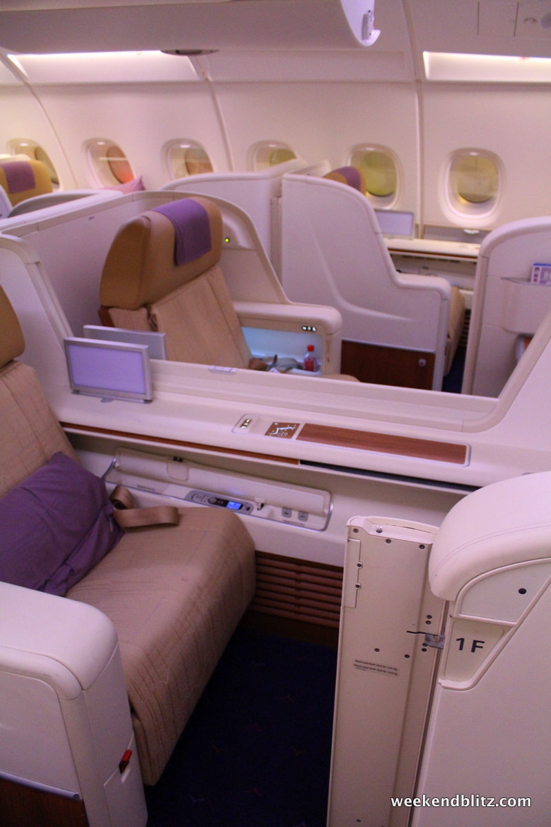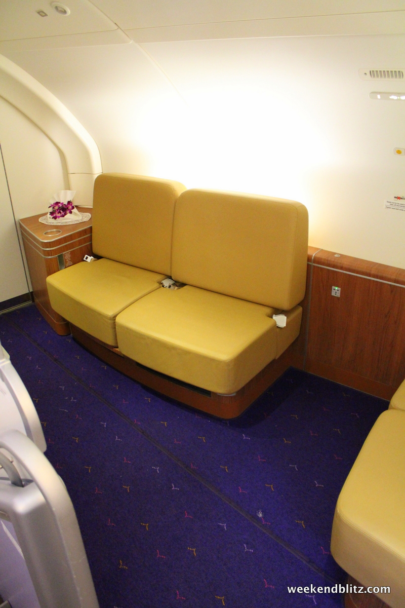 Thai Royal First on the Airbus A380 is the carrier’s newest cabin and features cubby-style seats that give you a good bit of privacy when lounging and sleeping.