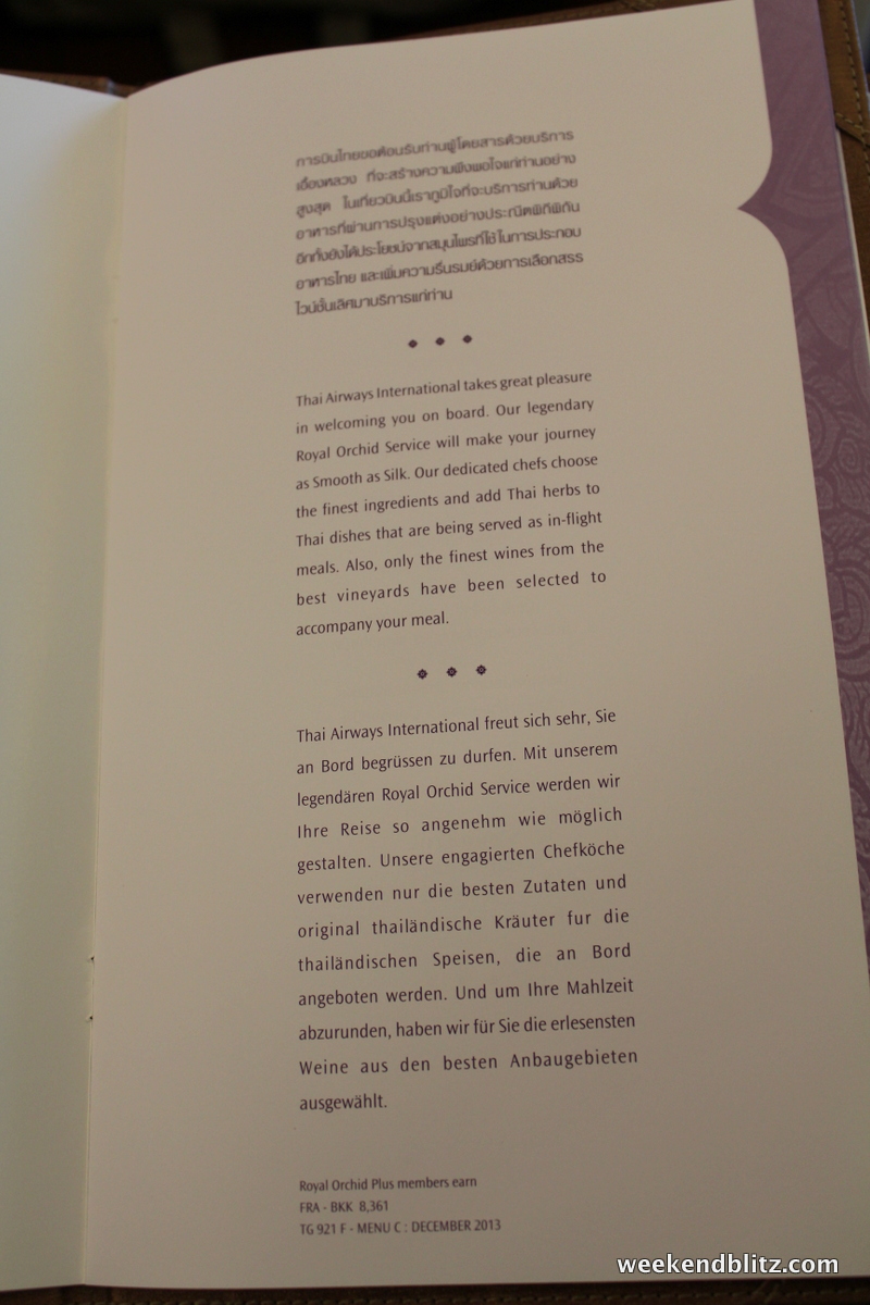 - Thai Airways A380 Royal First Class – TG 921 Frankfurt-FRA to Bangkok-BKK