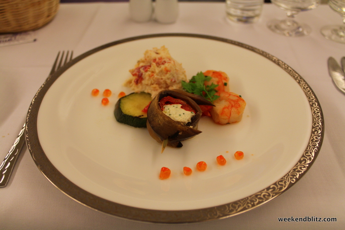 ~1.5 hours after departure: Well, with 2 rounds of “First Servings” down, now time for the actual appetizer, or “First Course”.