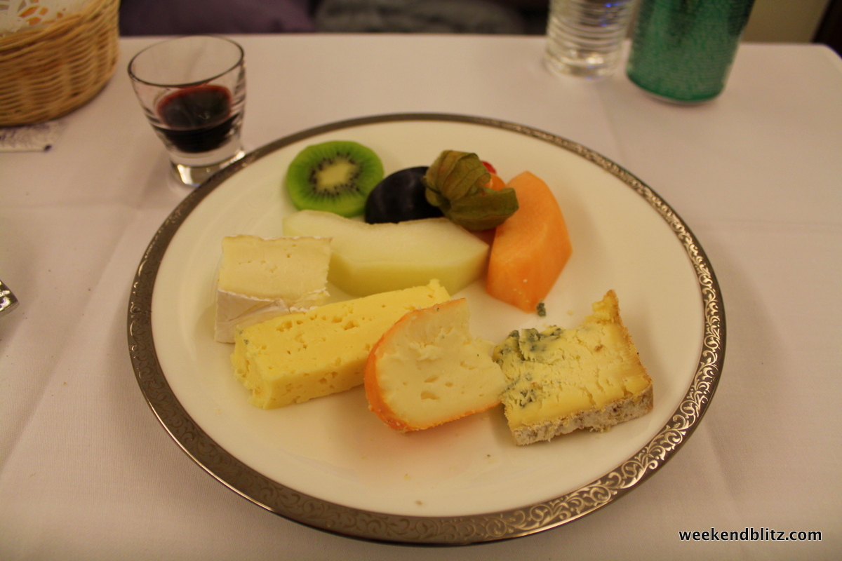 4:35pm (~2 hrs after departure): Within about 20 mins, this 4th, main course was cleared and it was on to the cheese, fruit and port selections. For simplicity of choosing, they wheeled the cart around again: