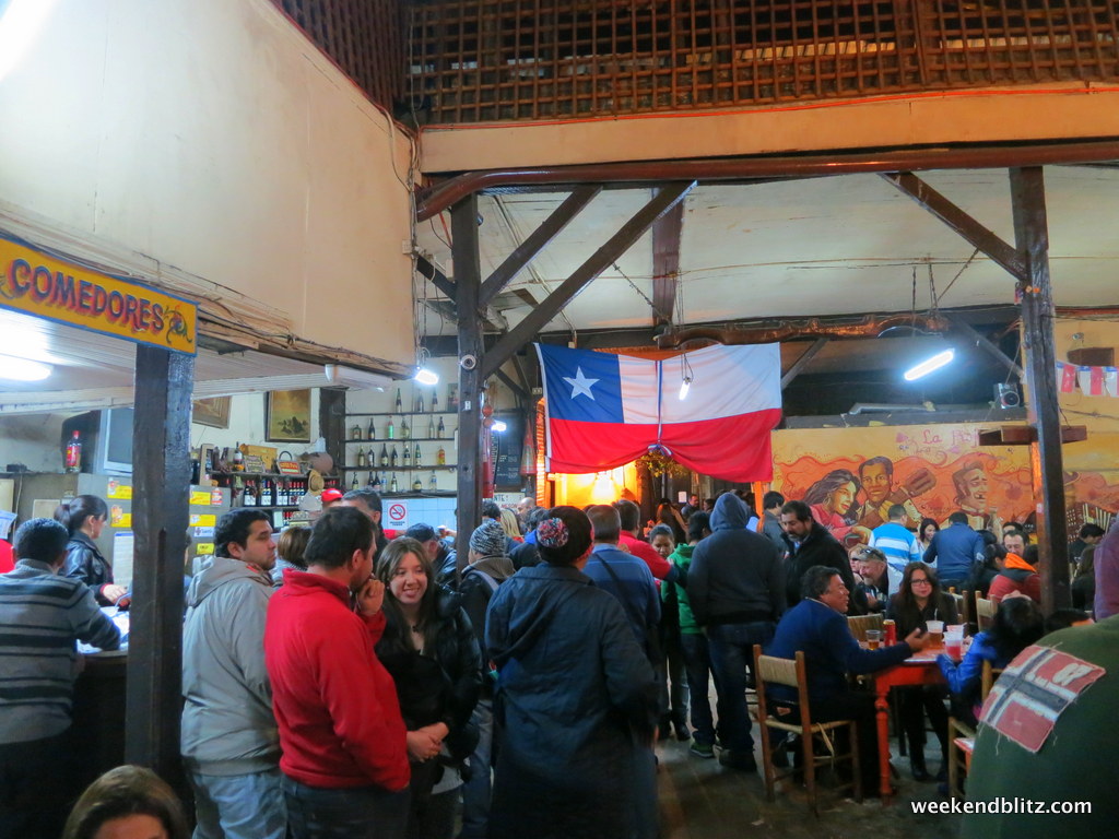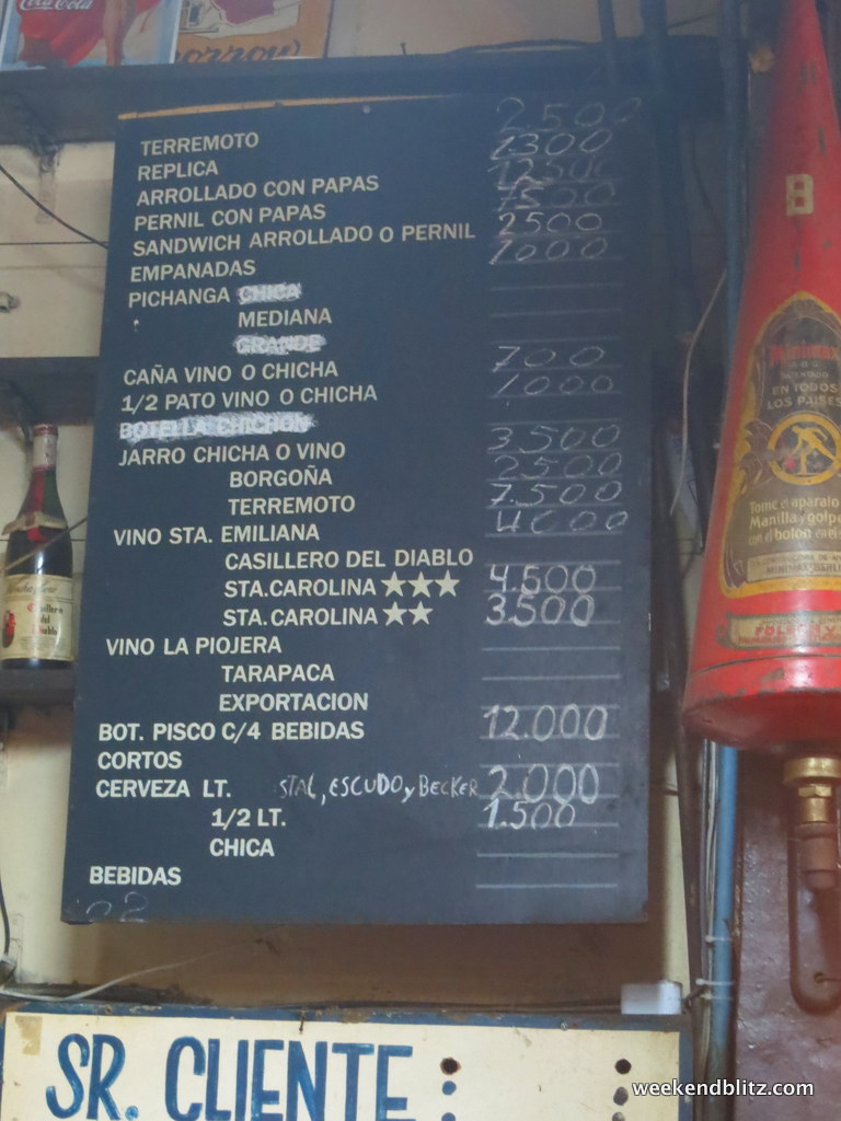 It was fun to be so intertwined with locals instead of tourists, and we ended up meeting a middle-aged couple who spoke great English and wanted to chat with us all night. I wouldn’t eat here but get a “Terremoto” which is Chile’s version of a Hurricane drink. Delicious …and dangerous. Terremotos are made with pipeño (a type of sweet, fermented white wine) topped with pineapple ice cream. Terremoto translates to “earthquake” and its said that the drink has this name because it makes your legs shaky once you drink it! If you’re brave enough, try a “Replica” (or “Aftershock”) next — it’s the same drink but only half the amount.