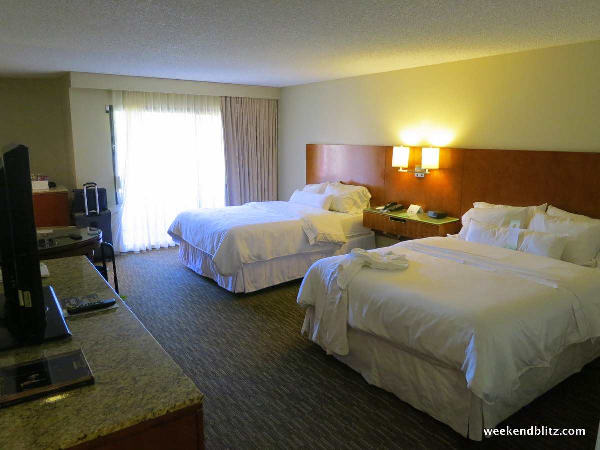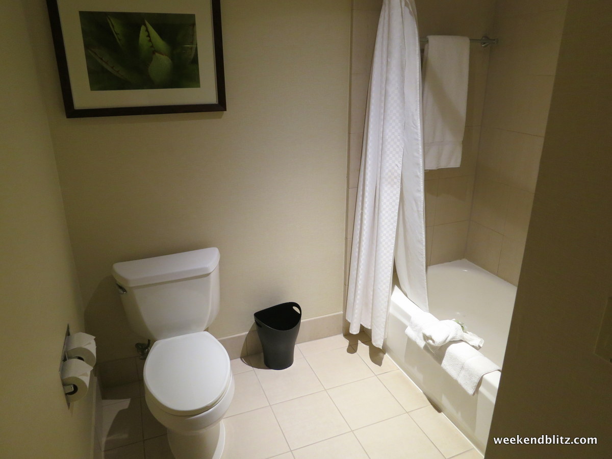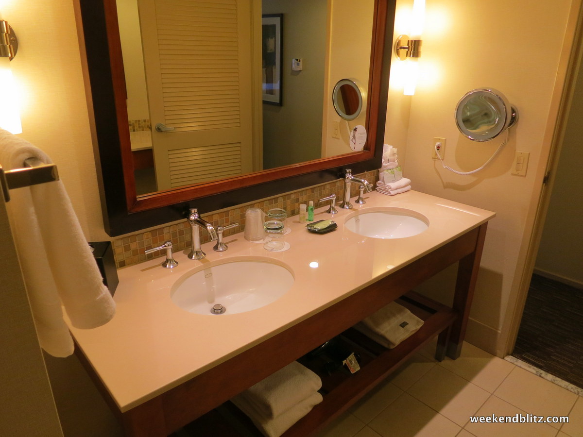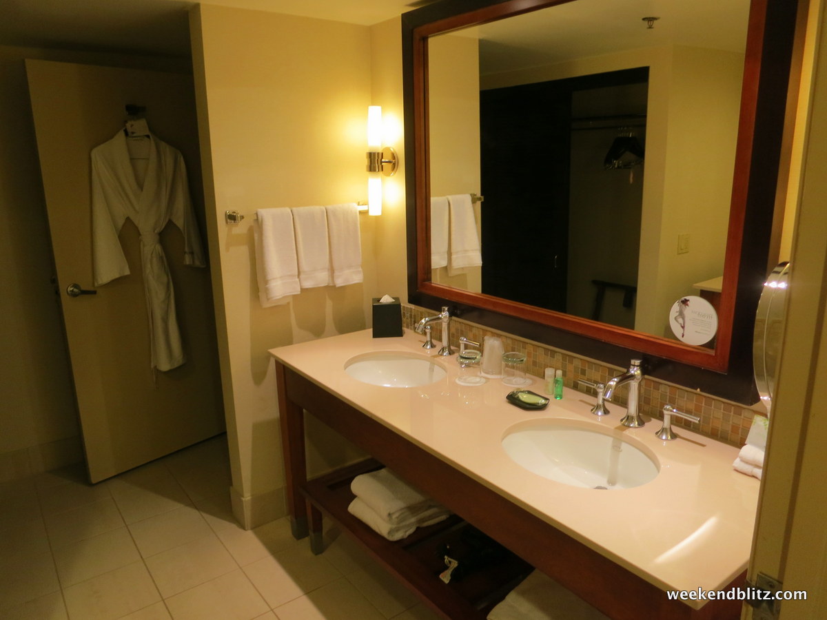 The additional bathroom space was noticeable and highly convenient. This was a nice extra touch that pushed it past regular Westin territory and closer (but not all of the way) into “resort” territory. The tub/shower and toilet were in their own room and there were dual sinks and a closet in a separate area.