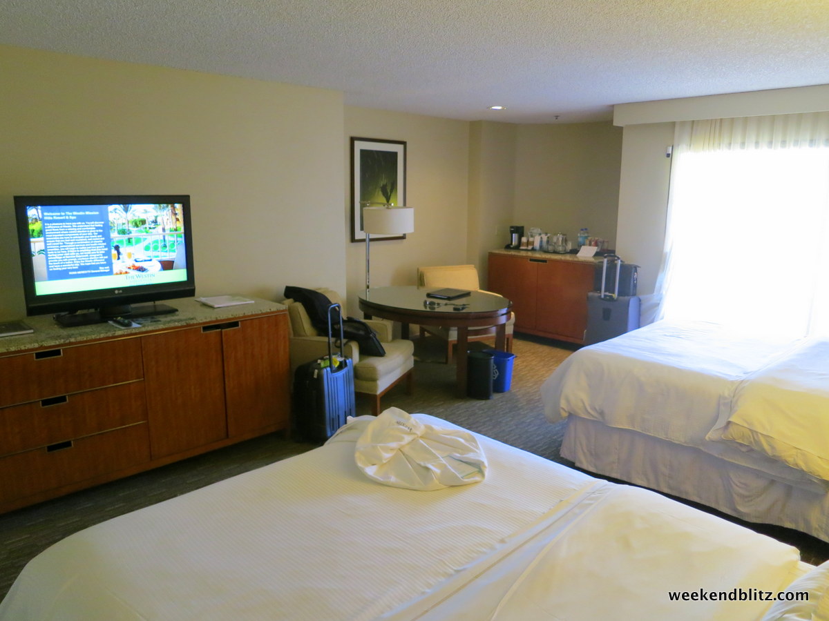 I’ve stayed at a few Starwood and Hyatt resorts, mostly in Asia, and can say that this Westin “resort” is a bit of a stretch. The room was bigger than a typical Westin but still nothing exceptionally resort-y feeling. That being said, the room was well appointed and more spacious than a typical Westin — and in good shape.