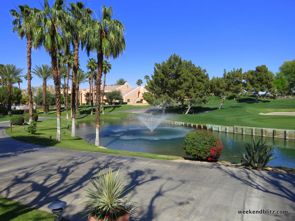 The property was beautiful, a true “Desert Island” or whatever the area calls itself. The Westin is part of a much larger compound that must be hundreds of acres large. Adjacent to the “The Westin Mission Hills Golf Resort & Spa” was another Westin property: The Westin Mission Hills Resort Villas, Palm Springs. Although it was easy to walk freely between the 2 resorts, there was limited pedestrian access to the rest of the property. I jogged around and it seems like they’ve got a full range of neighborhoods from duplex-style condos to huge luxury homes. It is truly a lush oasis amid the desert, full of vegetation and bright green golf courses with the backdrop of hilly mountains.