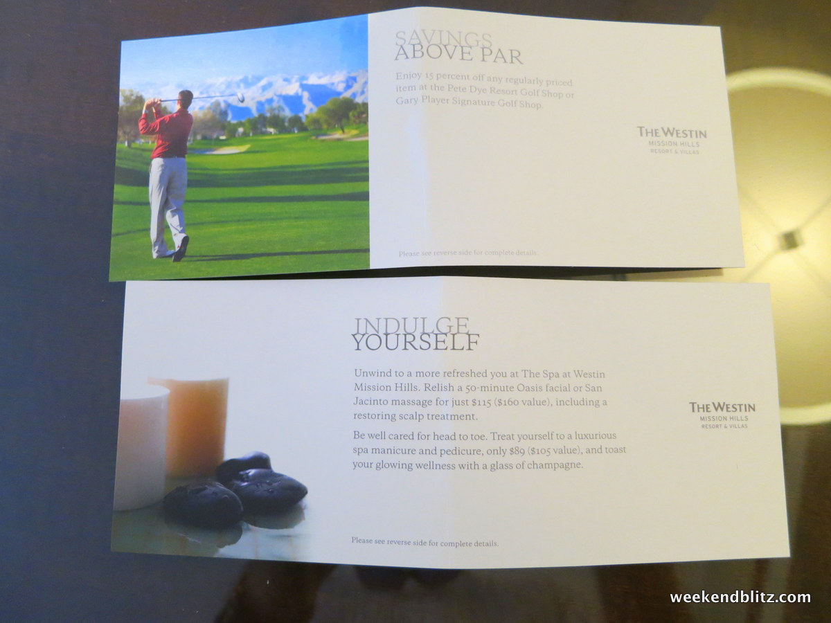 BOTTOM LINE: While the Westin Mission Hills Resort seems to be an older property, it has been renovated and is pretty much up to good quality resort standards. There are more golf courses and pools than you might know what to do with, but it’s one of the only tolerable places to be if you find yourself in the Palm Springs desert.