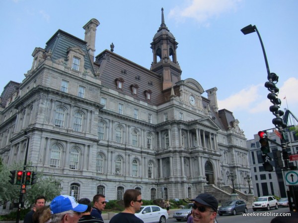 Saturday morning, we were hunting around online to figure out what to do. We had heard great things about Fitz & Follwell Co. bike tours (TripAdvisor), but they didn’t appear to handle last minute reservations very well online and the 4-hour bike tour of the whole city left at 10 a.m. from the Plateau Royal district – the opposite side of town from us. Instead, we discovered that Guidatour (http://www.guidatour.qc.ca/) offers walking tours of Vieux Montreal daily during the summer, departing from Notre Dame (luckily, 5 minutes away from us).